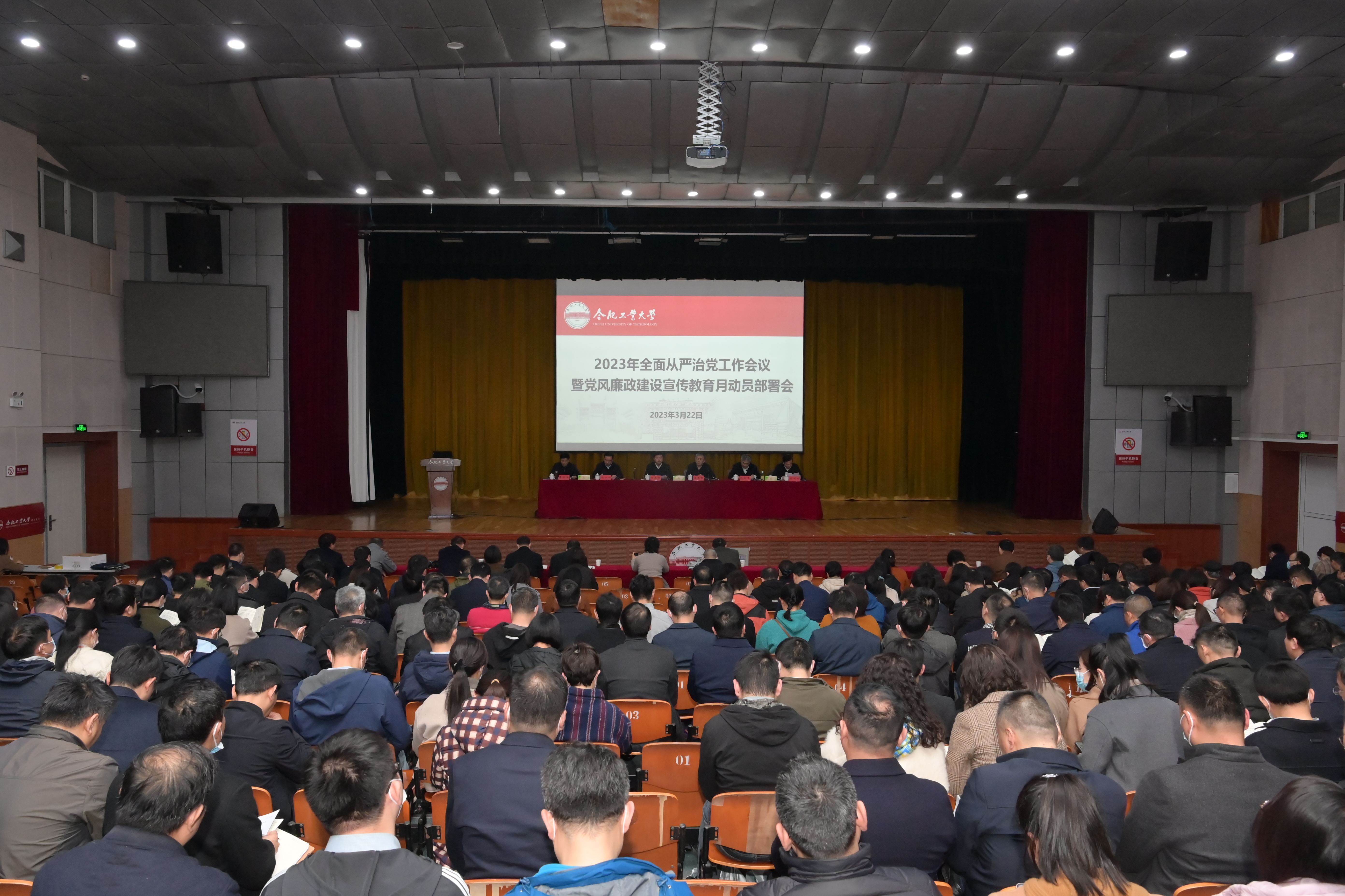 3月22日下午,学校召开2023年全面从严治党工作会议暨党风廉政建设宣传教育月动员部署会,深入学习贯彻党的二十大精神和二十届中央纪委二次全会精神、2023年教育系统全面从严治党工作视频会议精神、安徽省十一届纪委三次全会精神,回顾总结过去一年学校全面从严治党工作,部署安排今年全面从严治党重点任务。校党委书记、校党的建设与全面从严治党工作领导小组组长余其俊作全面从严治党工作报告,会议由校党委常委、副校长吴玉程主持。