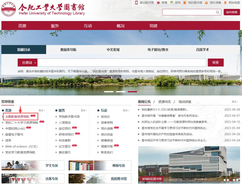 为保障学习贯彻习近平新时代中国特色社会主义思想主题教育扎实开展,图书馆作为学校文献信息资源中心,整合发掘官方新闻媒体和馆藏数字化文献信息资源,开通“学习贯彻习近平新时代中国特色社会主义思想主题教育资源导航”,并通过图书馆主页发布,供全校师生学习利用。