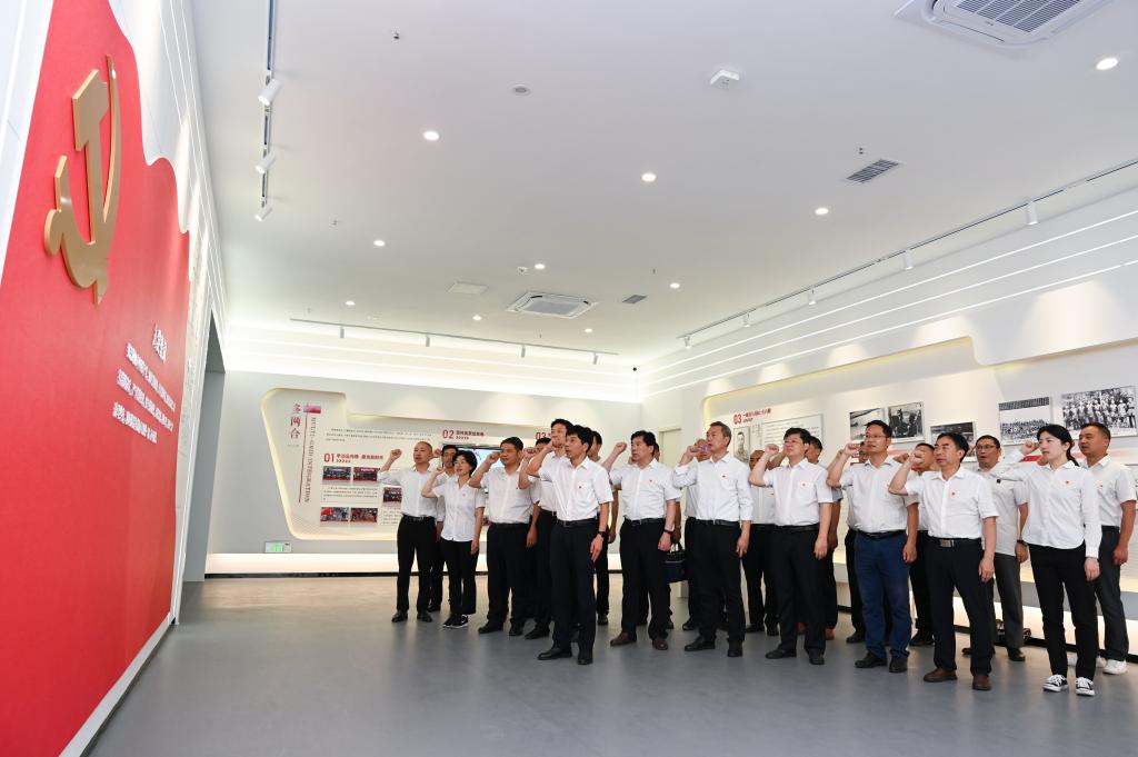 位于狸桥镇蒋山村的红色教育基地——新四军第二支队司令部旧址,于2023年5月被正式授牌“首批安徽省新四军历史研究会红色教育基地”。8日下午,读书班一行来到该基地参观学习。在司令部旧址,党员干部认真聆听红色微党课,重温了新四军二支队在狸桥及其周边区域的战斗事迹和光辉历史。大家在新四军战斗序列表、新四军二支队主要作战图前驻足端详、交流心得,行至粟裕将军临时办公地点缓步瞻仰、缅怀过往,并在志愿者的带领下重温了新四军第二支队夜袭裘公渡、狸桥反“扫荡”、白沙李伏击战、奔袭官陡门光辉战斗事迹。随后,校区党委副书记、管委会常务副主任方留带领全体党员干部,面向鲜红党旗、重温入党誓词,在铿锵誓言中牢记初心使命、汲取前进力量。